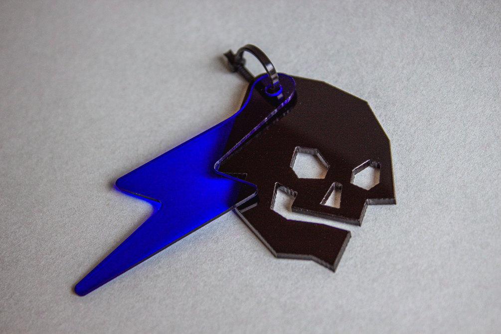 - Material: Acrílico azul y negro.